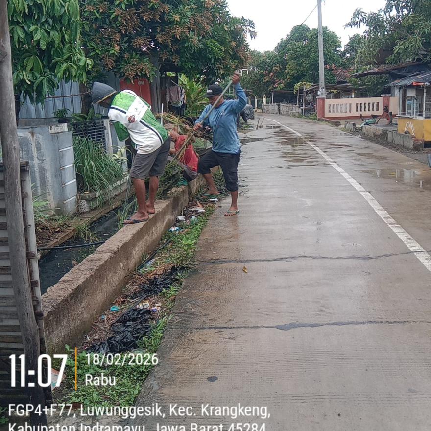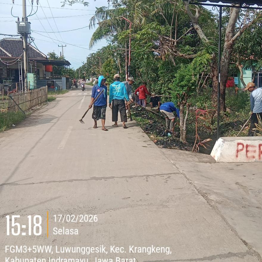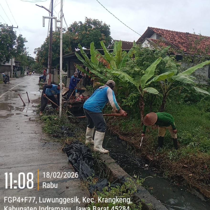 LUWUNGGESIK - Memasuki puncak musim penghujan di bulan Februari, Warga Desa Luwunggesik, Kecamatan Krangkeng, Kabupaten Indramayu, menggelar aksi gotong royong bersihkan selokan dan saluran pembuangan air pada hari Selasa, 17 Februari 2026 dan pada hari Rabu, 18 Februari 2026.