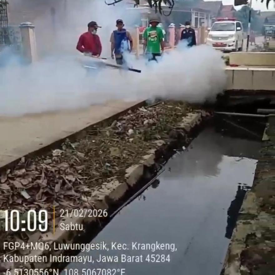 LUWUNGGESIK- Menanggapi ancaman penyebaran penyakit Demam Berdarah Dengue (DBD) di musim pancaroba, Pemerintah Desa Luwunggesik, Kecamatan Krangkeng, Kabupaten Indramayu, Bergerak cepat dengan melaksanakan penyemprotan fogging pada Sabtu, 21 Februari 2026.