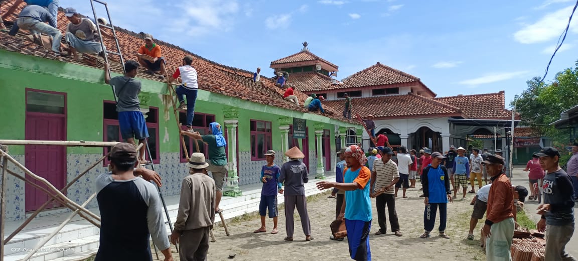Warga Desa Luwunggesik Kecamatan Krangkeng-Indramayu bersama pemerintah desa dan wali murid, bergotong royong melakukan renovasi bangunan Madrasah DTA Al-Bi'tsatuttarbiyah yang berada di blok bakaljaya Rt 02 Rw 01, minggu (07/08/2022).